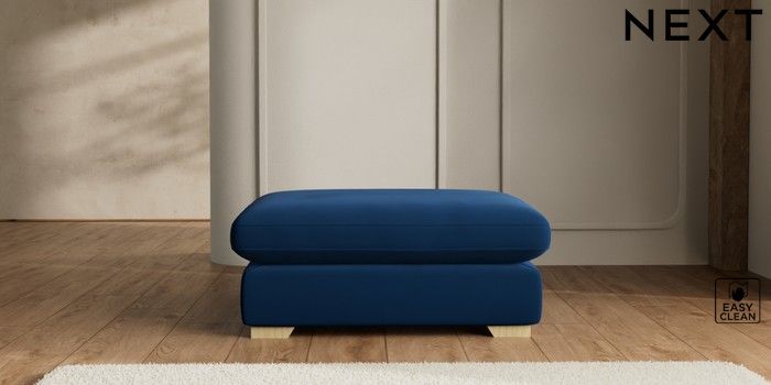 7.2.6 Buy N Premium The Snuggle Grand Extra Large Footstool Plush Velvet Easy Clean Navy Blue Square Angle - Light from the Next UK online shop Click here to use our accessible website