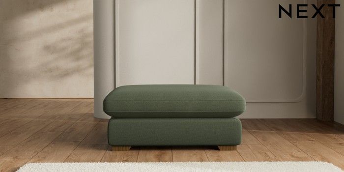7.2.6 Buy N Premium The Snuggle Grand Extra Large Footstool Relaxed Linen Look Dark Green Square Angle - Mid from the Next UK online shop Click here to use our accessible website