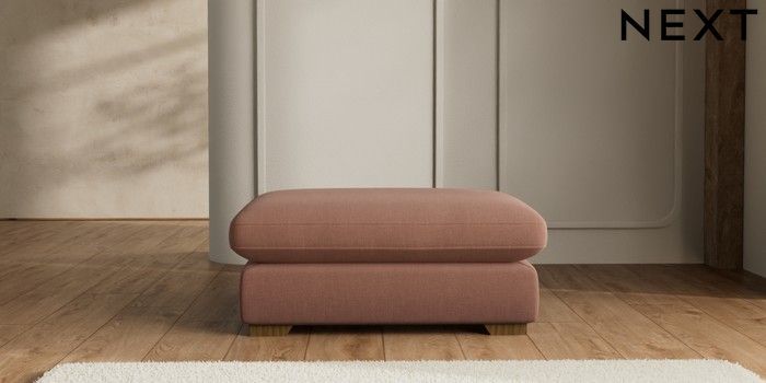 7.2.6 Buy N Premium The Snuggle Grand Extra Large Footstool Relaxed Linen Look Light Rust Brown Square Angle - Mid from the Next UK online shop Click here to use our accessible website