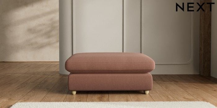 7.2.6 Buy N Premium The Snuggle Grand Extra Large Footstool Relaxed Linen Look Light Rust Brown Wooden Glide - Light from the Next UK online shop Click here to use our accessible website