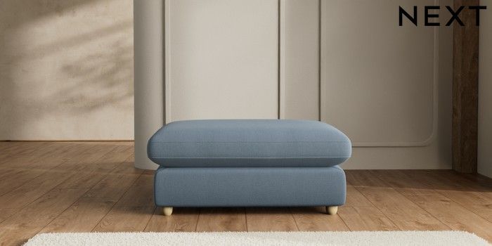 7.2.6 Buy N Premium The Snuggle Grand Extra Large Footstool Relaxed Linen Look Mid Blue Wooden Glide - Light from the Next UK online shop Click here to use our accessible website