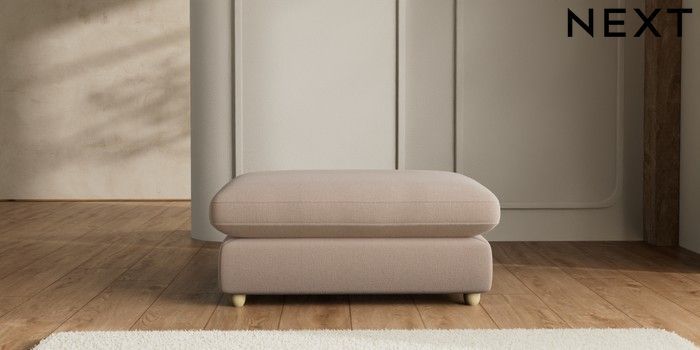 7.2.6 Buy N Premium The Snuggle Grand Extra Large Footstool Relaxed Linen Look Mid Natural Wooden Glide - Light from the Next UK online shop Click here to use our accessible website