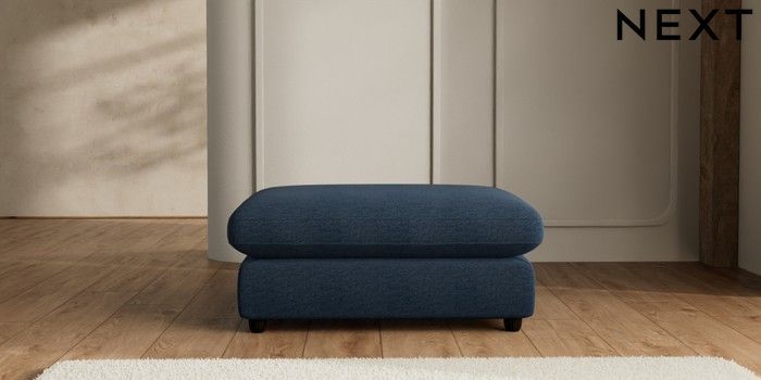 7.2.6 Buy N Premium The Snuggle Grand Extra Large Footstool Ripple Chenille Dark Blue Wooden Glide - Dark from the Next UK online shop Click here to use our accessible website