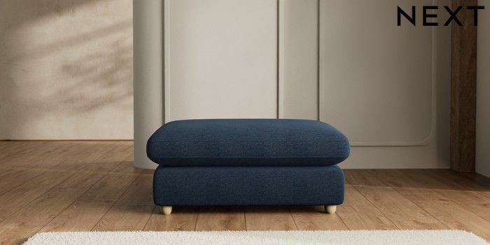 7.2.6 Buy N Premium The Snuggle Grand Extra Large Footstool Ripple Chenille Dark Blue Wooden Glide - Light from the Next UK online shop Click here to use our accessible website