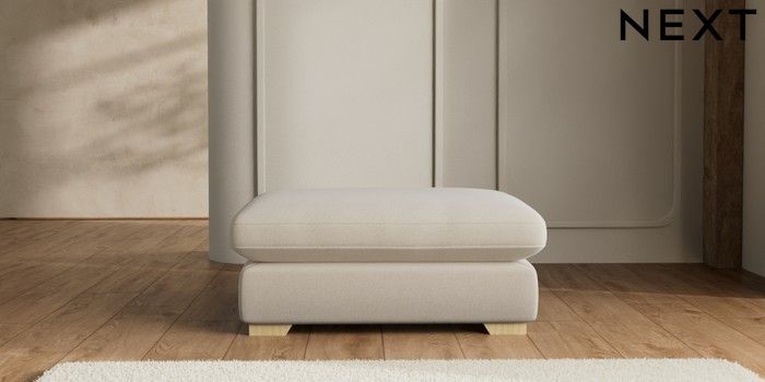 7.2.6 Buy N Premium The Snuggle Grand Extra Large Footstool Studio Chenille Oyster Square Angle - Light from the Next UK online shop Click here to use our accessible website
