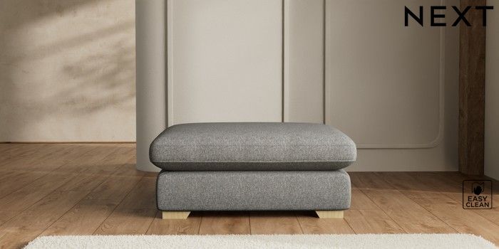 7.2.6 Buy N Premium The Snuggle Grand Extra Large Footstool Tweedy Blend Easy Clean Dark Grey Square Angle - Light from the Next UK online shop Click here to use our accessible website