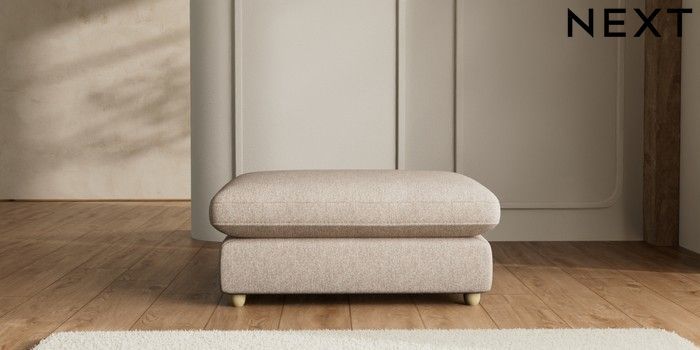 7.2.6 Buy N Premium The Snuggle Grand Extra Large Footstool Tweedy Chenille Mid Natural Wooden Glide - Light from the Next UK online shop Click here to use our accessible website