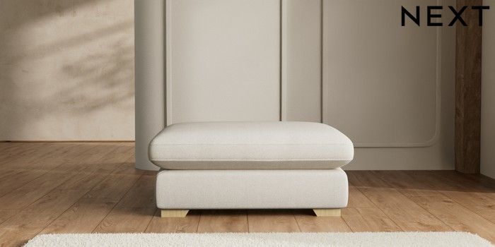 7.2.6 Buy N Premium The Snuggle Grand Extra Large Footstool Tweedy Chenille Oyster Square Angle - Light from the Next UK online shop Click here to use our accessible website