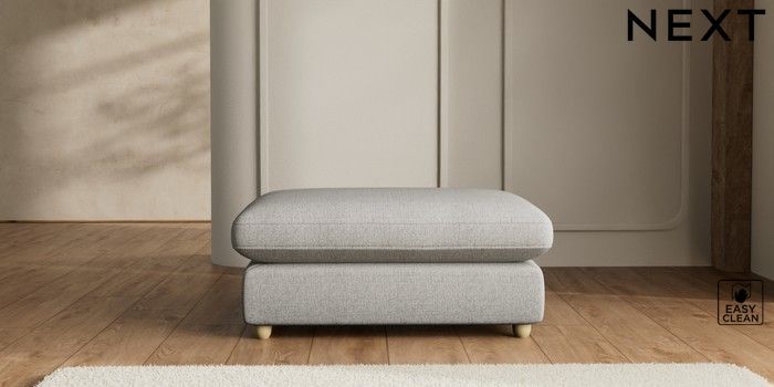 7.2.6 Buy N Premium The Snuggle Grand Extra Large Footstool Woven Chenille Easy Clean Light Grey Wooden Glide - Light from the Next UK online shop Click here to use our accessible website