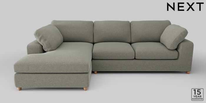 6.12.1 Buy N Premium The Snuggle Grand Large Corner Chaise - Left Hand Chunky Marl Light Olive Green Wooden Glide - Light from the Next UK online shop Click here to use our accessible website