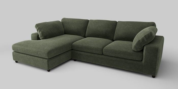 6.12.1 Buy N Premium The Snuggle Grand Large Corner Chaise - Left Hand Luxe Chenille Mid Green Wooden Glide - Dark from the Next UK online shop Click here to use our accessible website