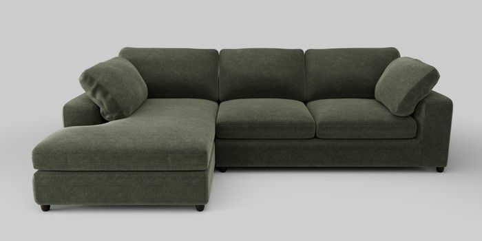 7.0.3 Buy N Premium The Snuggle Grand Large Corner Chaise - Left Hand Luxe Chenille Mid Green Wooden Glide - Dark from the Next UK online shop Click here to use our accessible website