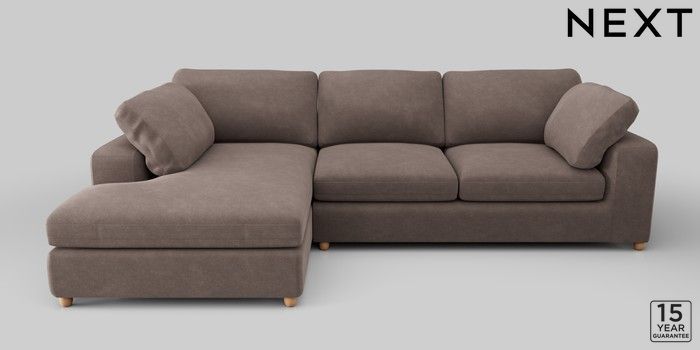 6.12.1 Buy N Premium The Snuggle Grand Large Corner Chaise - Left Hand Luxe Chenille Mink Brown Wooden Glide - Light from the Next UK online shop Click here to use our accessible website