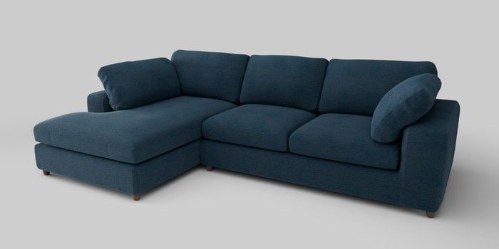 6.12.1 Buy N Premium The Snuggle Grand Large Corner Chaise - Left Hand Ripple Chenille Dark Blue Wooden Glide - Mid from the Next UK online shop Click here to use our accessible website