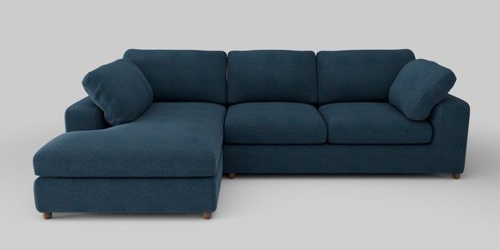 7.0.3 Buy N Premium The Snuggle Grand Large Corner Chaise - Left Hand Ripple Chenille Dark Blue Wooden Glide - Mid from the Next UK online shop Click here to use our accessible website