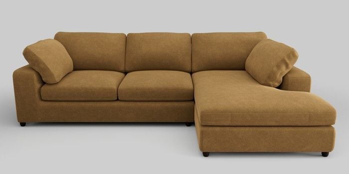 7.0.3 Buy N Premium The Snuggle Grand Large Corner Chaise - Right Hand Luxe Chenille Honey Yellow Wooden Glide - Dark from the Next UK online shop Click here to use our accessible website