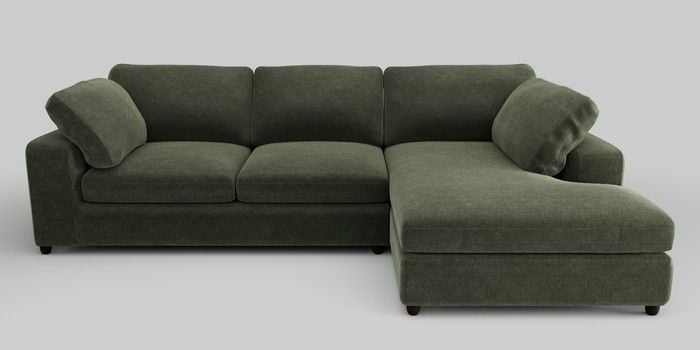 7.0.3 Buy N Premium The Snuggle Grand Large Corner Chaise - Right Hand Luxe Chenille Mid Green Wooden Glide - Dark from the Next UK online shop Click here to use our accessible website