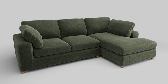 6.12.1 Buy N Premium The Snuggle Grand Large Corner Chaise - Right Hand Luxe Chenille Mid Green Wooden Glide - Light from the Next UK online shop Click here to use our accessible website