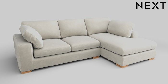 7.0.3 Buy N Premium The Snuggle Grand Large Corner Chaise - Right Hand Luxe Chenille Oyster Large Square Angle - Light from the Next UK online shop Click here to use our accessible website