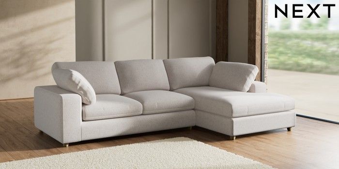 7.2.6 Buy N Premium The Snuggle Grand Large Corner Chaise - Right Hand Multi Weave Oyster Wooden Glide - Light from the Next UK online shop Click here to use our accessible website