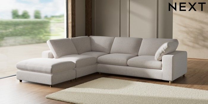 7.2.6 Buy N Premium The Snuggle Grand Large Open End Corner Chaise - Left Hand Multi Weave Oyster Wooden Glide - Light from the Next UK online shop Click here to use our accessible website