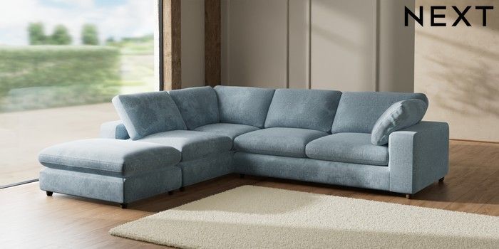7.2.6 Buy N Premium The Snuggle Grand Large Open End Corner Chaise - Left Hand Plush Chenille Light Blue Wooden Glide - Mid from the Next UK online shop Click here to use our accessible website