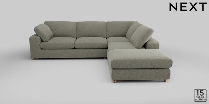 6.12.1 Buy N Premium The Snuggle Grand Large Open End Corner Chaise - Right Hand Chunky Marl Light Olive Green Wooden Glide - Light from the Next UK online shop Click here to use our accessible website