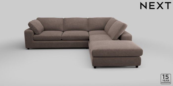 6.12.1 Buy N Premium The Snuggle Grand Large Open End Corner Chaise - Right Hand Luxe Chenille Mink Brown Wooden Glide - Dark from the Next UK online shop Click here to use our accessible website
