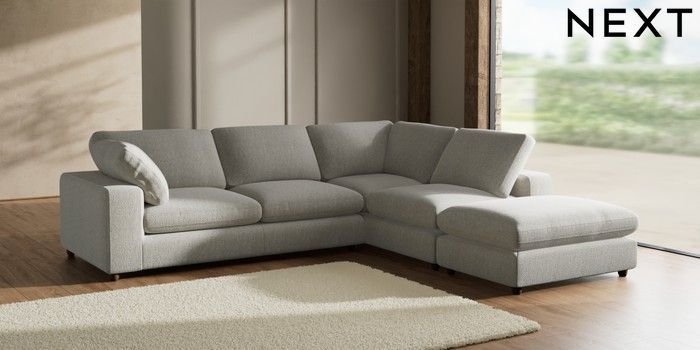 7.2.6 Buy N Premium The Snuggle Grand Large Open End Corner Chaise - Right Hand Multi Weave Light Blue Wooden Glide - Mid from the Next UK online shop Click here to use our accessible website