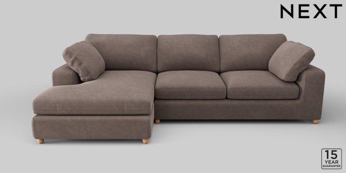 6.12.1 Buy N Premium The Snuggle Grand Large Sofa Chaise - Left Hand Luxe Chenille Mink Brown Wooden Glide - Light from the Next UK online shop Click here to use our accessible website