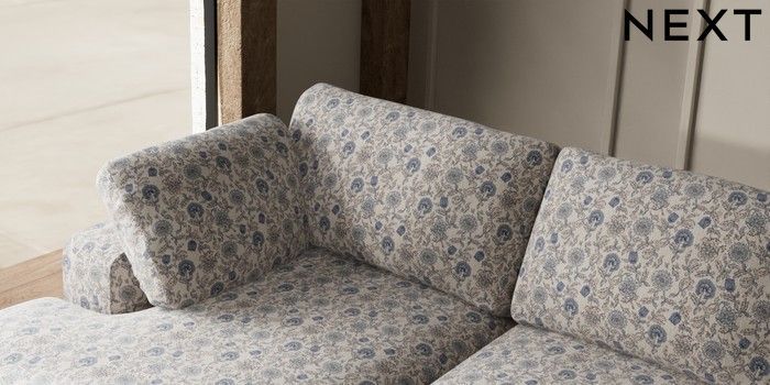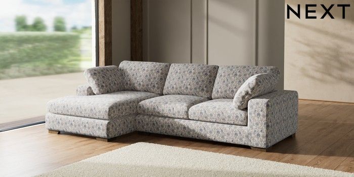 7.3.1 Buy N Premium The Snuggle Grand Large Sofa Chaise - Left Hand Relaxed Linen Look Print Woodblock Floral Blue Large Square Angle - Mid from the Next UK online shop