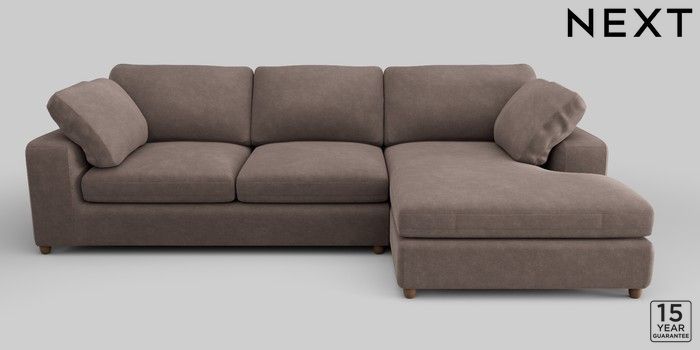 6.12.1 Buy N Premium The Snuggle Grand Large Sofa Chaise - Right Hand Luxe Chenille Mink Brown Wooden Glide - Mid from the Next UK online shop Click here to use our accessible website