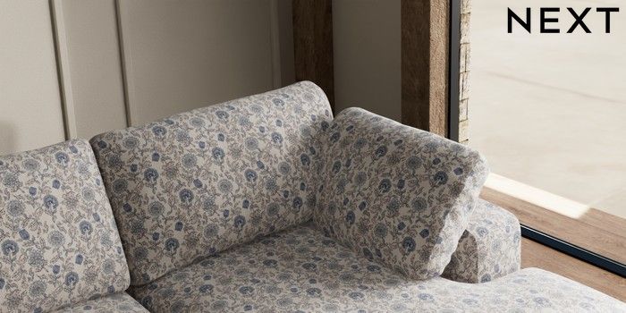 7.3.1 Buy N Premium The Snuggle Grand Large Sofa Chaise - Right Hand Relaxed Linen Look Print Woodblock Floral Blue Large Square Angle - Light from the Next UK online shop
