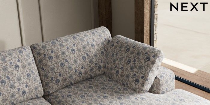 7.3.1 Buy N Premium The Snuggle Grand Large Sofa Chaise - Right Hand Relaxed Linen Look Print Woodblock Floral Blue Wooden Glide - Light from the Next UK online shop