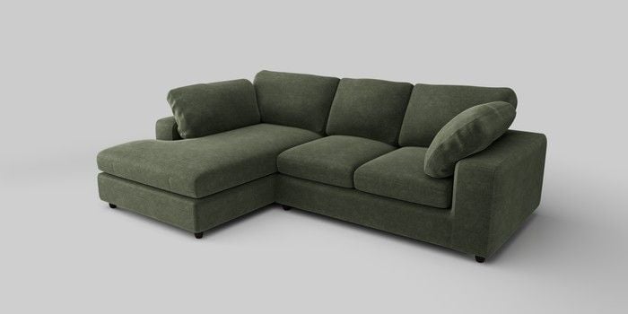 6.12.1 Buy N Premium The Snuggle Grand Medium Corner Chaise - Left Hand Luxe Chenille Mid Green Wooden Glide - Dark from the Next UK online shop Click here to use our accessible website