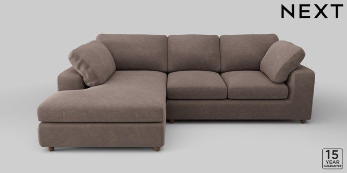 6.12.1 Buy N Premium The Snuggle Grand Medium Corner Chaise - Left Hand Luxe Chenille Mink Brown Wooden Glide - Mid from the Next UK online shop Click here to use our accessible website