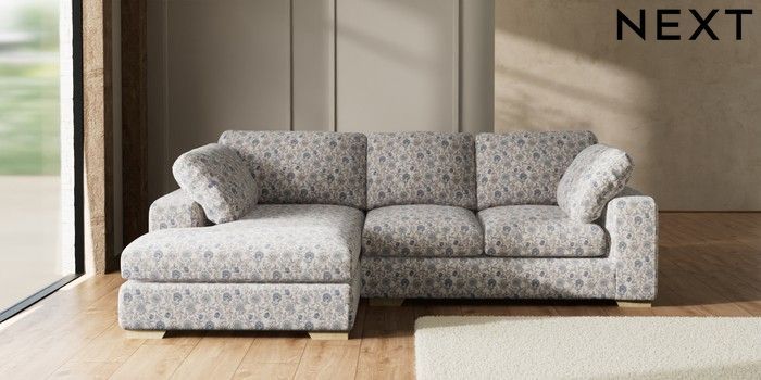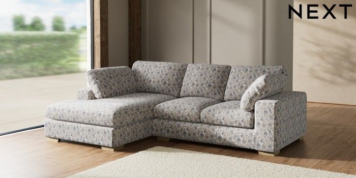 7.3.1 Buy N Premium The Snuggle Grand Medium Corner Chaise - Left Hand Relaxed Linen Look Print Woodblock Floral Blue Large Square Angle - Light from the Next UK online shop Click here to use our accessible website