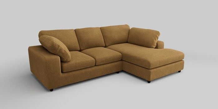 6.12.1 Buy N Premium The Snuggle Grand Medium Corner Chaise - Right Hand Luxe Chenille Honey Yellow Wooden Glide - Dark from the Next UK online shop Click here to use our accessible website