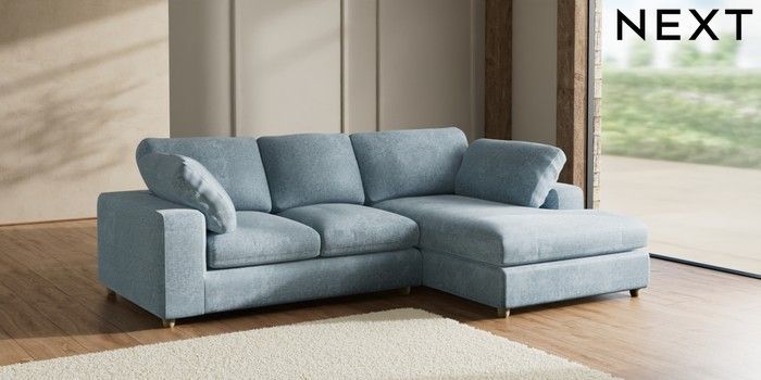 7.2.6 Buy N Premium The Snuggle Grand Medium Corner Chaise - Right Hand Plush Chenille Light Blue Wooden Glide - Light from the Next UK online shop Click here to use our accessible website