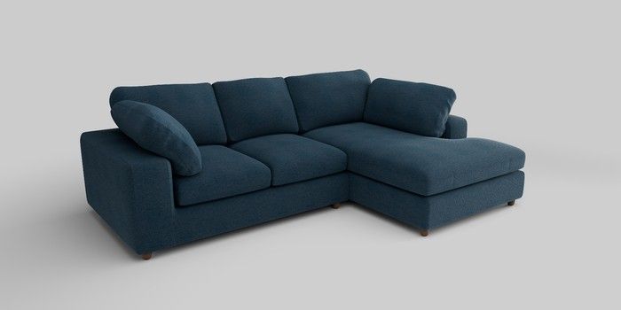 6.12.1 Buy N Premium The Snuggle Grand Medium Corner Chaise - Right Hand Ripple Chenille Dark Blue Wooden Glide - Mid from the Next UK online shop Click here to use our accessible website