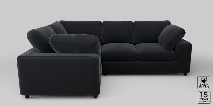 6.12.1 Buy N Premium The Snuggle Grand Medium Corner Sofa - Left Hand Plush Velvet Easy Clean Charcoal Grey Wooden Glide - Dark from the Next UK online shop Click here to use our accessible website