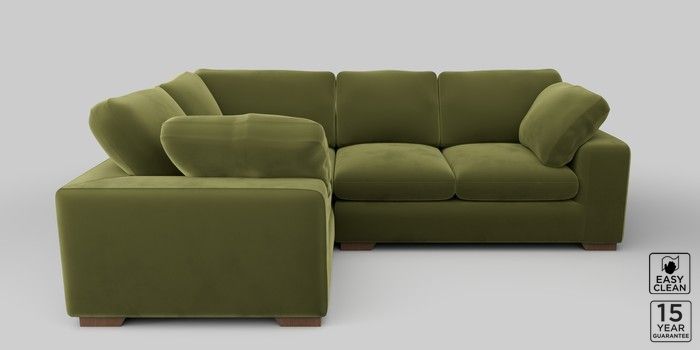 6.12.1 Buy N Premium The Snuggle Grand Medium Corner Sofa - Left Hand Plush Velvet Easy Clean Mid Olive Green Large Square Angle - Mid from the Next UK online shop Click here to use our accessible website
