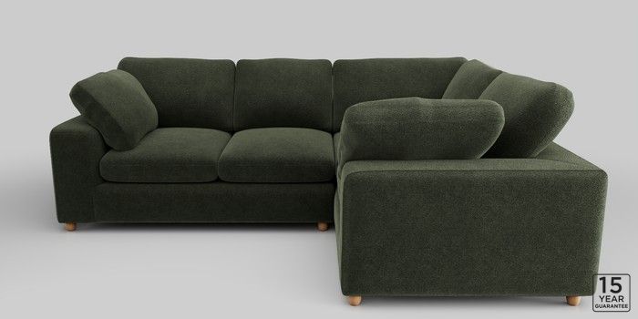 6.12.1 Buy N Premium The Snuggle Grand Medium Corner Sofa - Right Hand Boucle Chenille Dark Moss Green Wooden Glide - Light from the Next UK online shop Click here to use our accessible website
