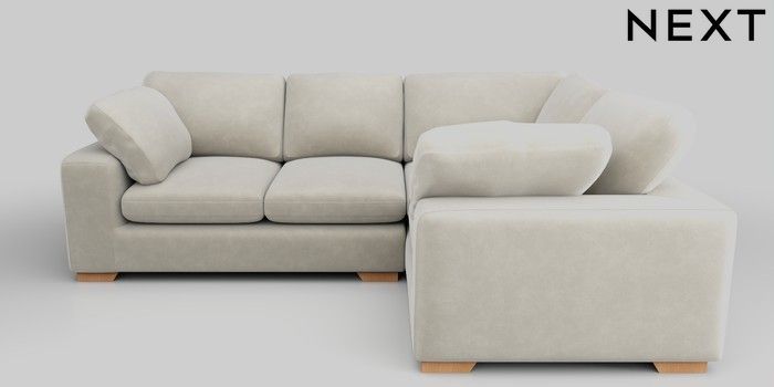 7.0.3 Buy N Premium The Snuggle Grand Medium Corner Sofa - Right Hand Luxe Chenille Oyster Large Square Angle - Light from the Next UK online shop Click here to use our accessible website