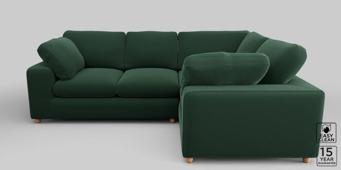 6.12.1 Buy N Premium The Snuggle Grand Medium Corner Sofa - Right Hand Plush Velvet Easy Clean Bottle Green Wooden Glide - Light from the Next UK online shop Click here to use our accessible website