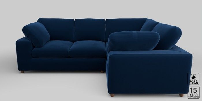 6.12.1 Buy N Premium The Snuggle Grand Medium Corner Sofa - Right Hand Plush Velvet Easy Clean Navy Blue Wooden Glide - Mid from the Next UK online shop Click here to use our accessible website
