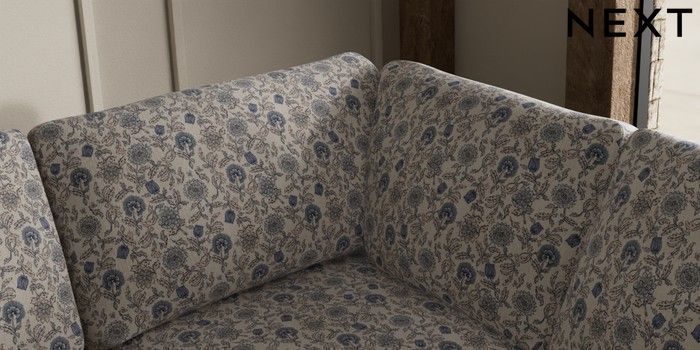 7.3.1 Buy N Premium The Snuggle Grand Medium Corner Sofa - Right Hand Relaxed Linen Look Print Woodblock Floral Blue Large Square Angle - Light from the Next UK online shop Click here to use our accessible website