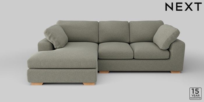 6.12.1 Buy N Premium The Snuggle Grand Medium Sofa Chaise - Left Hand Chunky Marl Light Olive Green Large Square Angle - Light from the Next UK online shop Click here to use our accessible website