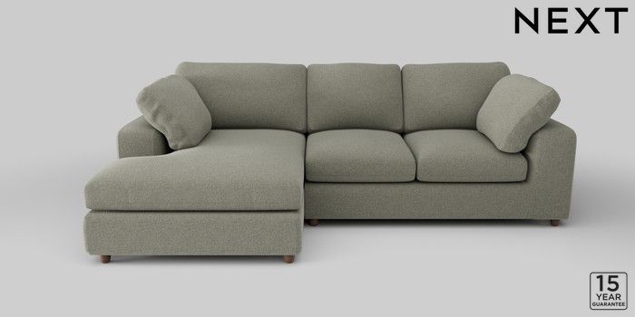 6.12.1 Buy N Premium The Snuggle Grand Medium Sofa Chaise - Left Hand Chunky Marl Light Olive Green Wooden Glide - Mid from the Next UK online shop Click here to use our accessible website