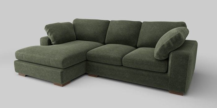 6.12.1 Buy N Premium The Snuggle Grand Medium Sofa Chaise - Left Hand Luxe Chenille Mid Green Large Square Angle - Mid from the Next UK online shop Click here to use our accessible website